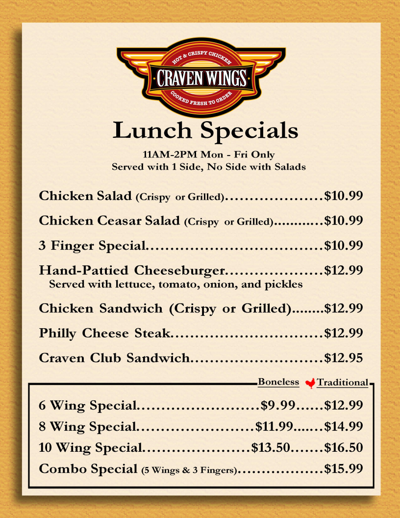 With glowing reviews highlighting excellent service and a friendly vibe, Craven Wings is a place you'll want to visit again and again!