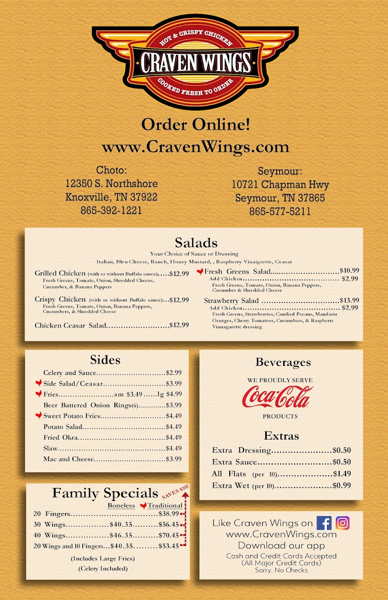 Welcome to Craven Wings, a delightful dining gem located at 10721 Chapman Hwy, Seymour, TN. Known for its welcoming atmosphere and friendly staff, Craven Wings offers a menu that promises to satisfy your cravings.